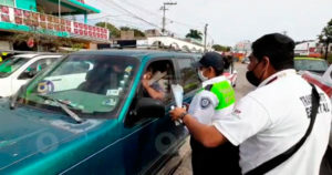 Elementos de Transporte Público verifican taxis y obsequian cubrebocas