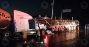 Unidad cargada de tubos de acero se impacta contra otra cargada de amoníaco, chofer se salva de morir aplastado.