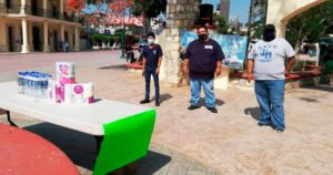 Con apoyo de la fuerza civil realizan entrega de cubrebocas y trípticos.