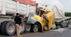 Sangriento carreterazo, tráiler cargado de cemento se impactó contra la parte trasera de otro tractocamión.