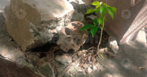 Un cráneo humano, restos de animales y otros elementos, fueron encontrados en el panteón del señor de las misericordias.