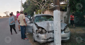 La unidad se impacta de lleno contra el mástil de concreto; 3 heridos.