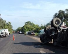 La zona se encuentra asegurada por elementos de la Fuerza Civil, estuvo en espera de que se realicen las maniobras para retirar la enorme cisterna metálica y descartar cualquier riesgo de fuga del peligroso combustible.