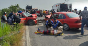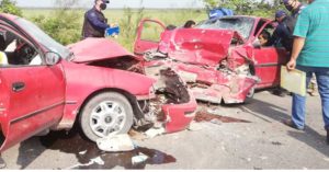 Chocan de frente dos autos, dos personas terminan prensados.