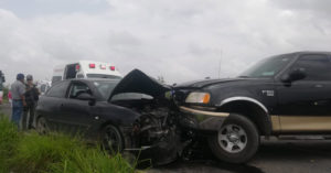 Conductora del vehículo compacto burla a la muerte, resulta ilesa.
