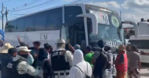 Migrantes arremetieron contra una unidad de Migración después de que elementos de la Guardia Nacional les impidieran avanzar por Veracruz en camiones