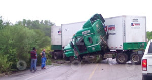 La pesada unidad invadió los dos carriles generando caos vial; quedó retorcida de forma extraña para terminar atravesada en medio de la carretera