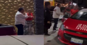 En el video que se difundió a través de las redes sociales se observa a Osiel Castro de la Rosa con la camisa desabotonada, tratando de calmar a la mujer