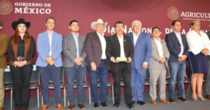 El rector de la UAT, MVZ Dámaso Leonardo Anaya Alvarado, recibió el reconocimiento entregado por el titular de la SADER, Ing. Víctor Villalobos Arámbula.