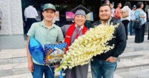 El graduado recibe y exhibe con orgullo el emotivo regalo.