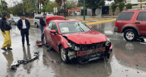 Gran error cometió un automovilista al intentar ganarle el paso a una pick up, pues al no lograrlo provocó un fuerte percance