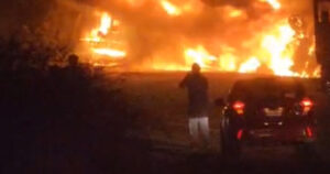 El fuego se apoderó de la unidad tras ocurrir una explosión; las llamaradas se podían ver a varios metros