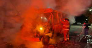 Una aparente falla mecánica propició el incendio de la unidad, el chofer huyó antes de la llegada de las autoridades