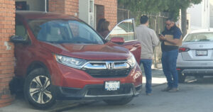 Por una razón desconocida, una señora pisó el acelerador a fondo, chocó un auto y terminó en la casa de al lado