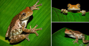 Su piel es marcadamente granular, con un patrón irregular trazado sobre tonos amarillentos, marrones y anaranjados. Sus ojos de cruz le dan una apariencia aún más peculiar, complementada por la tóxica sustancia lechosa que la cubre casi por completo.