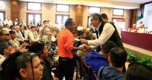 El gobernador y la presidenta del Dif Tamaulipas iniciaron la entrega de la primera remesa de 2 mil 400 tarjetas de la firma del convenio de la universalidad de la pensión para personas con discapacidad.