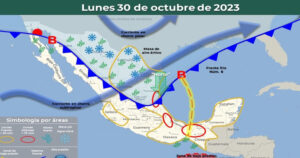El frente frío número 8 generará frío de hasta 12 grados, rachas fuertes de viento, chubascos y lluvias fuertes a muy fuertes en el noroeste, norte y noreste de México
