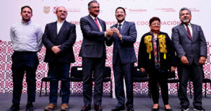 Firman convenio de colaboración el gobernador Américo Villarreal y el jefe de Gobierno de la Ciudad de México, Martí Batres.