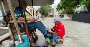 ALDO SÁNCHEZ, quien lleva 25 años trabajando como BOLERO en la “Plaza del 8” de #CdVictoria, narra que llegó a ese oficio por que nadie le daba trabajo, por estar en silla de ruedas; pero se pudo comprar su silla de bolero para chambear gracias a que ‘le pegó’ a la Lotería.