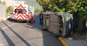 Conductor pierde el control de su camioneta tras ser embestido por un micro, recostando su unidad sobre el lateral izquierdo