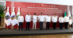 Acuerdan Tamaulipas, Nuevo León, San Luis Potosí y Veracruz blindar sus fronteras comunes al establecer una coordinación con comunicación, para detener líderes delincuenciales y pacificar la regiòn
