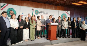 El Presidente del Congreso de Tamaulipas estuvo acompañado por 20 legisladores locales y federales, en conferencia de prensa celebrada en el Palacio Legislativo de San Lázaro