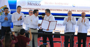 El gobernador Américo Villarreal Anaya y el director general de la Conagua, Efraín Morales López, pusieron en marcha la obra que garantizará el abasto para Victoria