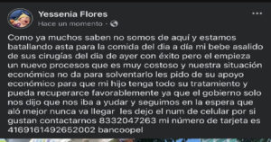 La madre de Ezequiel ha pedido a la comunidad solidaridad para enfrentar los gastos médicos que diariamente superan los 15 mil pesos