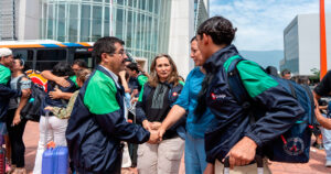 El rector de la UAT, Dámaso Anaya Alvarado y su esposa, Lic. Isolda Rendón de Anaya, presidenta de Familia UAT, despidieron a un grupo de 18 estudiantes del Centro de Idiomas para la Niñez y la Adolescencia (CeINA) que participan en el programa de movilidad Verano en Canadá