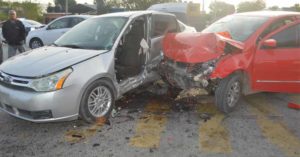 Conductora se envalentona y trata de ganarle el paso a otro auto en el entronque de Portes Gil y Berriozábal: falló y tras el percance la dejan atrapada dentro de su coche