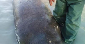 A través de redes sociales pescadores piden apoyo a las autoridades para regresarlo al mar, ya que aun esta vivo.