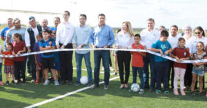En esta obra se construyó una cancha de fútbol sintético con pasto de primer nivel, además de un sistema de iluminación potentes, gradas, rejas y banquetas por los alrededores