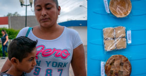 Diariamente Alicia y su hijo Pepe recorren las calles para vender pay’s, empanadas y otros panes con los que costean el tratamiento del pequeño que semanalmente les cuesta 5 mil pesos.