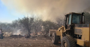 CIUDAD VICTORIA, TAMAULIPAS.- El incendio en el relleno sanitario fue de tal magnitud que el fuego consumió de 7 a 10 hectáreas en menos de