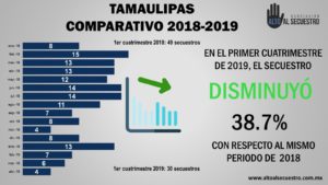 Tamaulipas ha avanzado del 2do. lugar en septiembre del 2016, al 5to en abril del 2019 de acuerdo a la asociación civil Alto al Secuestro