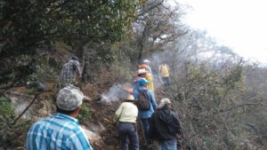 Pedro Granados, titular de Protección Civil, dijo que debido a los fuertes vientos que se presentan en la zona este domingo y una topografía accidentada, no ha sido posible controlar el incendio