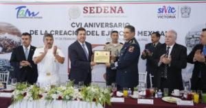 CIUDAD VICTORIA, TAMAULIPAS.- El Gobernador Francisco García Cabeza de Vaca junto al Comandante de la 8/a Zona Militar, General de Brigada D.E.M. Carlos Arturo Pancardo