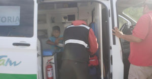 Paramédicos le brindaron los primeros auxilios al menor de 9 años de edad quien tenia afectada la palma de la mano derecha.