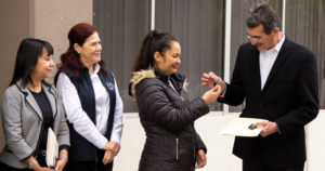 En una ceremonia, el rector de la UAT, José Andrés Suárez Fernández, hizo entrega del vehículo que se ganó la trabajadora universitaria Johana Monserrat Domínguez Contreras