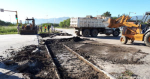 Reparan la zona de asfálto dañada y hundimiento de la vía, en ese crucero con el Ferrocarril