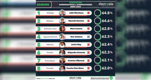 De acuerdo con Electoralia, la aceptación de la población de Tamaulipas al trabajo del Gobernador Américo Villarreal Anaya se mantiene por encima del 60%.