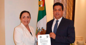 María de Lourdes Arteaga Reyna, recibió de manos del gobernador, Francisco García Cabeza de Vaca el nombramiento al frente de la Secretaría de Finanzas