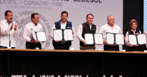El Gobernador y el secretario de Desarrollo Social, Enrique Miranda Nava, suscribieron tres convenios para aterrizar acciones de capacitación, comedores y estancias infantiles