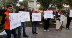 Con cartulinas en mano con las leyendas ‘No al gasolinazo’ y ‘Fuera Peña Nieto’ las ocho personas que se reunieron realizaron una protesta pacífica y silenciosa por el aumento al combustible