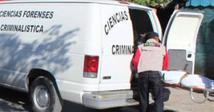 Se encontraba enrollado en un cobertor y una bolsa negra grande de plástico. Presentaba impactos de bala
