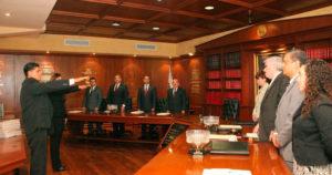 El Magistrado Raúl Morales Cadena entregó a ambos juzgadores el Decálogo y Código de Ética que norma la conducta de los impartidores de justicia