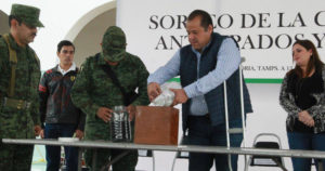 El presidente municipal, Óscar Almaraz Smer, encabezó este domingo la ceremonia del sorteo para el personal de soldados del Servicio Militar Nacional, «Clase 1998» anticipados y remisos