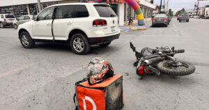 La conductora responsable quiso ganarle el paso y embistió al repartidor de DIDI, quien resulta con fractura de la pierna derecha.