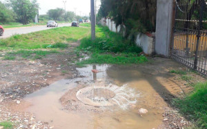 La Conagua inició labores en medio de olores fétido a causa de un derrame de aguas negras qué casi inunda los estacionamientos de la dependencia