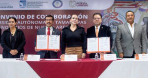 La Universidad Autónoma de Tamaulipas (UAT) y el Colegio de Notarios de Nuevo Laredo firmaron un convenio de colaboración para la formación profesional y la vinculación académica.